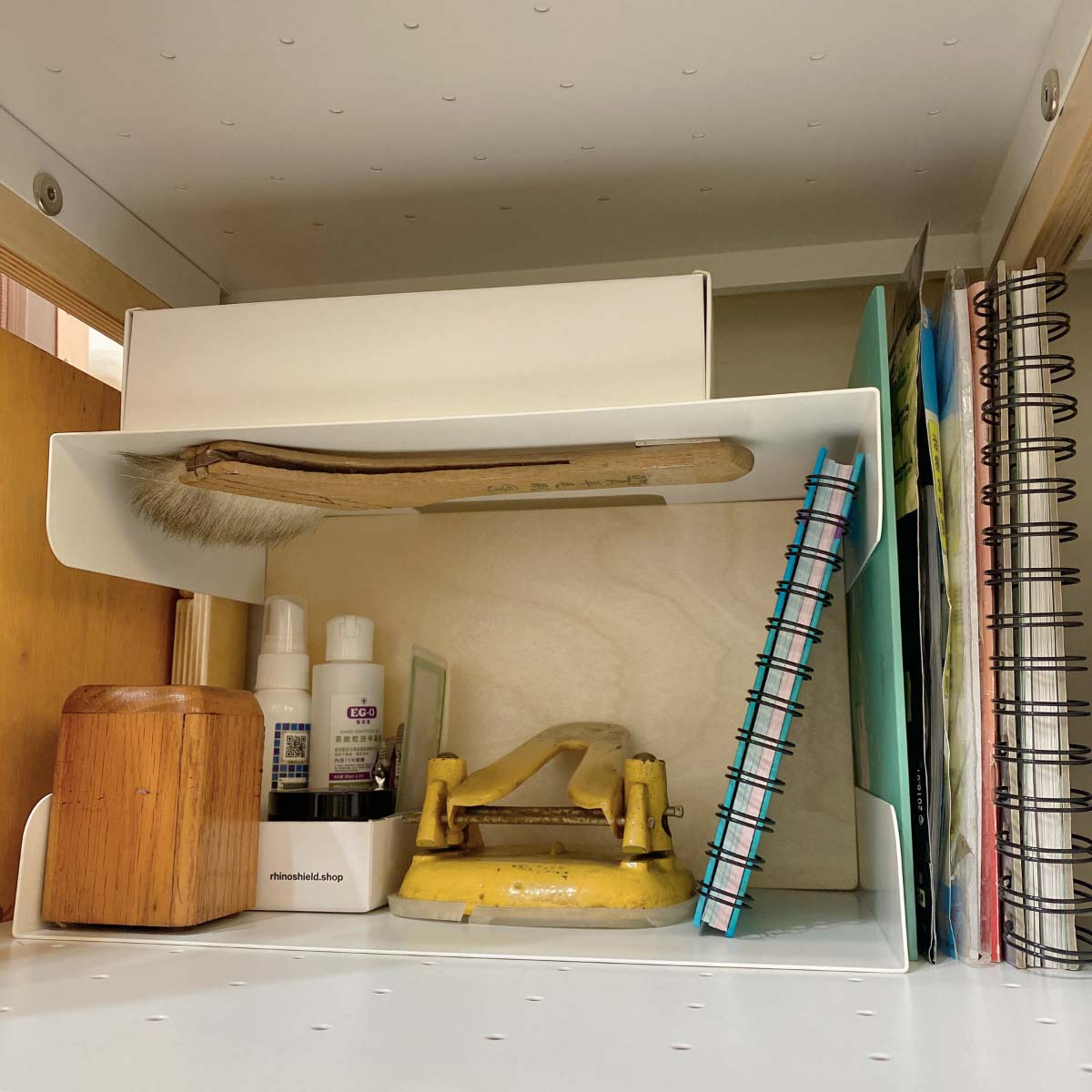 ▲ 多功能收納 → 站著是文件盒,躺著是墊高層架。