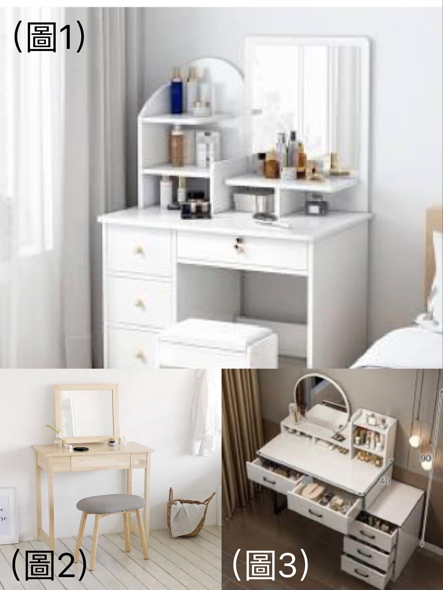1. 有桌上收納的款式(圖1),因無法調整高度,有些保養品無法收納,或是深度太深,要先把外面保養品拿出來才能拿到裡面的保養品,非常不方便。