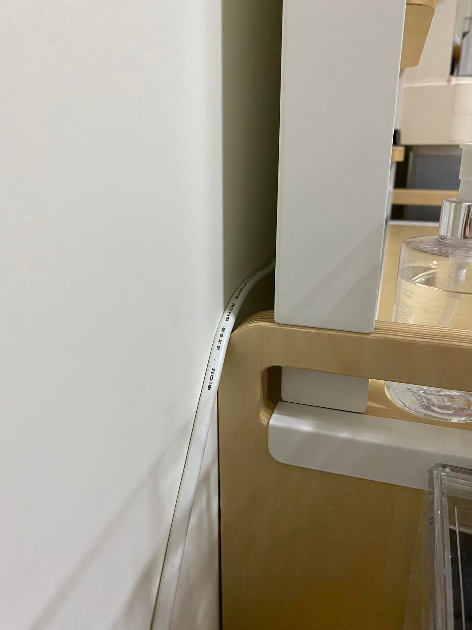 4. 延長線會露出來,目前沒看到可以藏起來的款式,不是黏牆壁就是放地上,醜又難打掃。